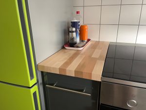 Lees verder >>De klant wilde graag een beukenhouten werkblad hebben op een keukenkastje, maar het sloot visueel...